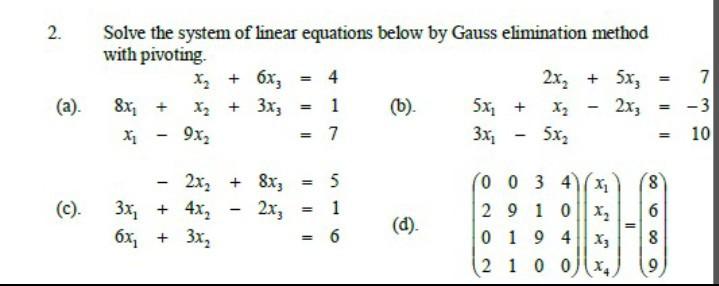 Solved 2 Solve The System Of Linear Equations Below By G Chegg Com